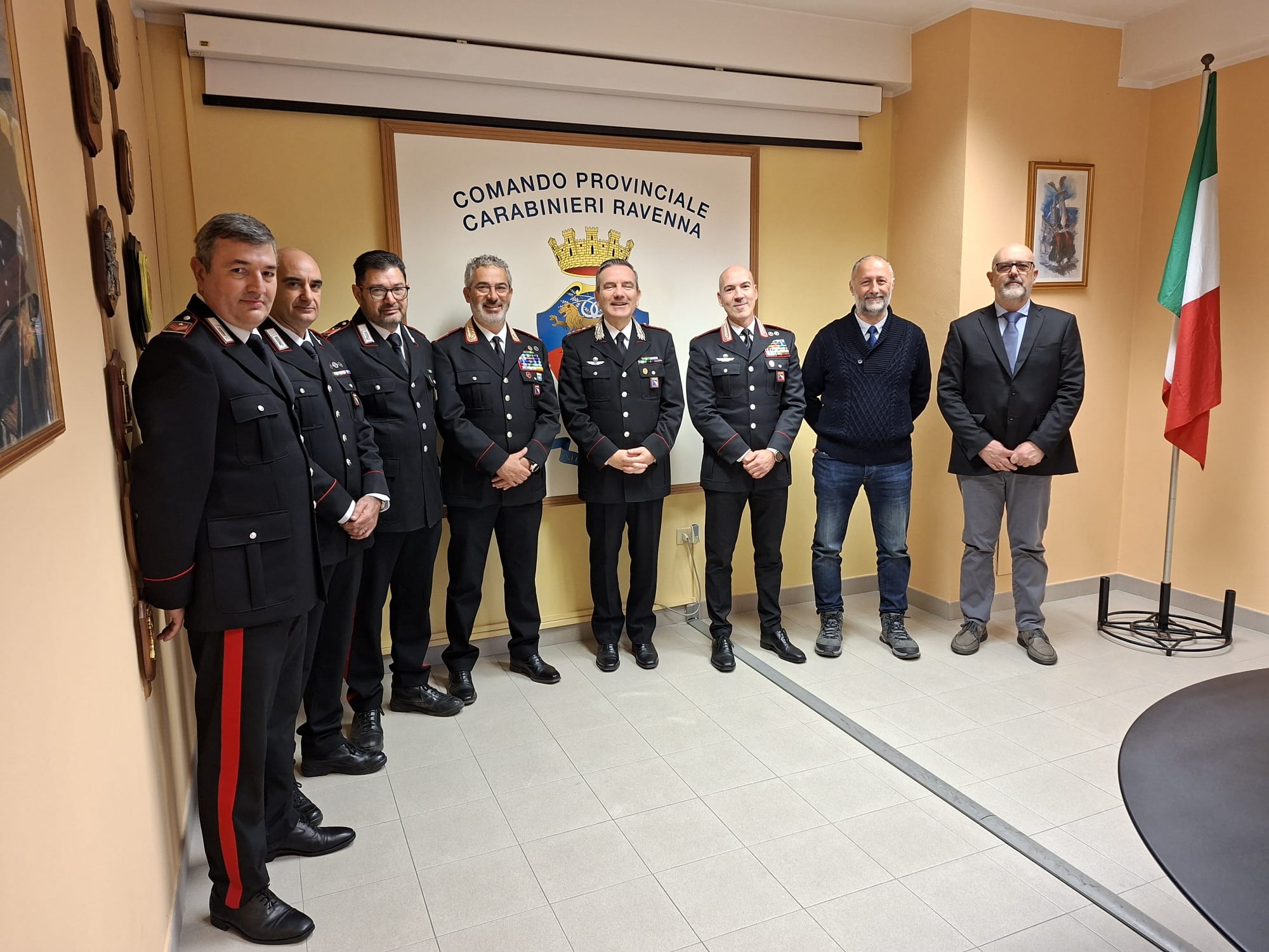 I Carabinieri prossimi al pensionamento sono: il Luogotenente Carica Speciale Vittorio La Porta, in servizio presso il Nucleo Informativo del Reparto Operativo del Comando Provinciale; il Luogotenente Carica Speciale Vittorio Bracconeri, addetto al Nucleo Investigativo del Reparto Operativo del Comando Provinciale; il Luogotenente Carica Speciale Bruno Vivaldo, Comandante della Stazione Carabinieri di Solarolo; l’Appuntato Scelto Carica Speciale Roberto Dradi, in servizio presso la Stazione Carabinieri di Ravenna; e gli Appuntati Scelti Carica Speciale Giancarlo Gregorio e Luciano Sartacci, in servizio presso la Stazione Carabinieri di Bagnara di Romagna.