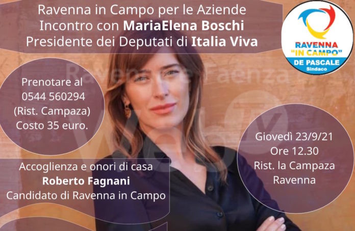 Giovedì 23 C.M. ore 12.30 a Ravenna, presso il ristorante “La Campaza” l’Onorevole Maria Elena Boschi, parlamentare e Capogruppo di Italia Viva alla Camera dei Deputati, parteciperà ad un incontro organizzato da Ravenna in Campo dal titolo “Ravenna in campo per le Aziende“.
