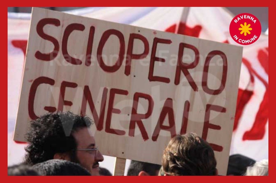 Ravenna in Comune, come sempre, è a fianco di tutte le lavoratrici ed i lavoratori che lottano per la difesa dei diritti, per un miglioramento delle condizioni di vita e per una società più giusta. Riteniamo del tutto inadeguate e, anzi, dannose per la collettività le iniziative che si stanno prendendo ed anche quelle che non vengono assunte a livello nazionale e locale in relazione alla situazione di crisi generale. Per questo confermiamo la nostra solidarietà.”