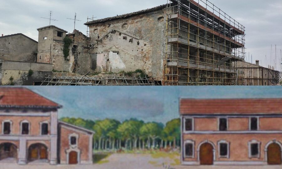 In realtà, prima di finire i lavori dovrebbero iniziare. Ad oggi risultano solo dei cosiddetti lavori di messa in sicurezza che dovrebbero impedire ai muri da anni pericolanti di cedere di schianto. E già il mancato schianto non è un esito scontato vista l’incuria protrattasi per anni e anni, interrotta soltanto da periodici annunci vuoti di conseguenze. La destinazione finale per gli storici edifici del porto, più volte inutilmente annunciata, è quella di entrare nella disponibilità dei Vigili del Fuoco come comando operativo locale e centro di formazione. Ovviamente queste attività avrebbero più facilmente trovato una collocazione senza scomodare il recupero degli edifici storici che, invece, avrebbero meritato una conservazione a prescindere: la realizzazione di entrambi nella seconda metà del “700, per quanto più ravvicinata ai nostri tempi dei monumenti bizantini, ne avrebbe comunque dovuto fare un patrimonio di per sé da tutelare, senza inventarsi la scusa dei Vigili del Fuoco. Non è andata così. Il Comune, invece di pensare alla tutela, ha dedicato ogni cura al riuscito tentativo di sbarazzarsene regalando il tutto all’Autorità Portuale. Quest’ultima, a sua volta, da più di vent’anni assume impegni e pure li rinnova per un recupero dei fabbricati. Il primo che ci ricordiamo risale al 3 luglio 2003 e vedeva firmatari Remo Nazareno di Carlo per l’Ente Porto e Vidmer Mercatali per il Comune di Ravenna. Impegni disattesi da più di vent’anni, dunque.