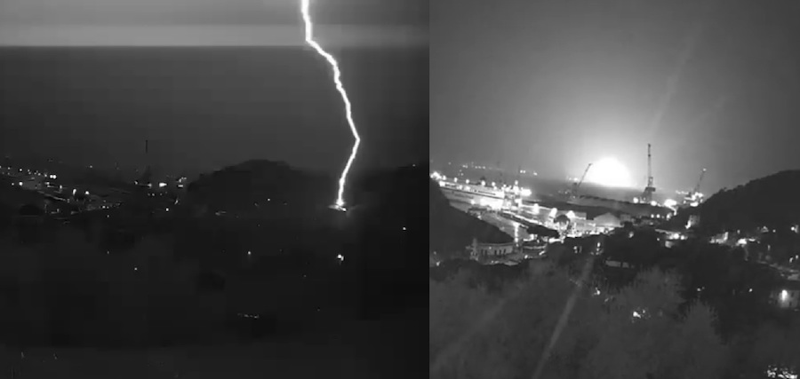 “La notte tra il 27 e 28 agosto mentre numerosi fulmini si abbattevano sul Levante ligure, un fulmine ha sfiorato il rigassificatore di Panigaglia incendiando il gas fuoriuscito dall’impianto fermato a seguito di un guasto della rete elettrica. In due successivi fotogrammi del filmato mandato in onda da un’emittente locale si vede in maniera chiara, prima, la caduta del fulmine e, poi, la successiva fiammata della nube di gas durata alcuni minuti. Il video di Tele Liguria Sud è visionabile in forma integrale sul nostro sito. La notizia non ha valicato gli appennini, ma comprensibilmente nel nord Tirreno ha destato un forte allarme, anche in considerazione dell’intensificarsi, per il cambiamento climatico, di fenomeni come quello intervenuto. Con buona ragione, visto che il gas è estremamente pericoloso e gli impianti gnl non sono certo esenti dal rischio di verificarsi di incidenti. Una esplosione a Quintana, in Texas, la scorsa estate, ad esempio, per fortuna senza vittime, ha messo fuori uso il più grande impianto di liquefazione per l’esportazione americano fino al marzo di quest’anno. Il rigassificatore di Panigaglia, nello spezzino, era uno dei tre unici impianti in Italia (gli altri sono: uno al largo di Livorno ed uno al largo di Porto Viro, a nord di Ravenna) prima dell’accelerazione su questo tipo di pericolosi impianti imposta dai governi Draghi e Meloni. È stato progettato e costruito da SNAM, è classificato “ad alto rischio di incidente rilevante”, sottoposto alla Direttiva Seveso III e a tutte le linee guida conseguenti.