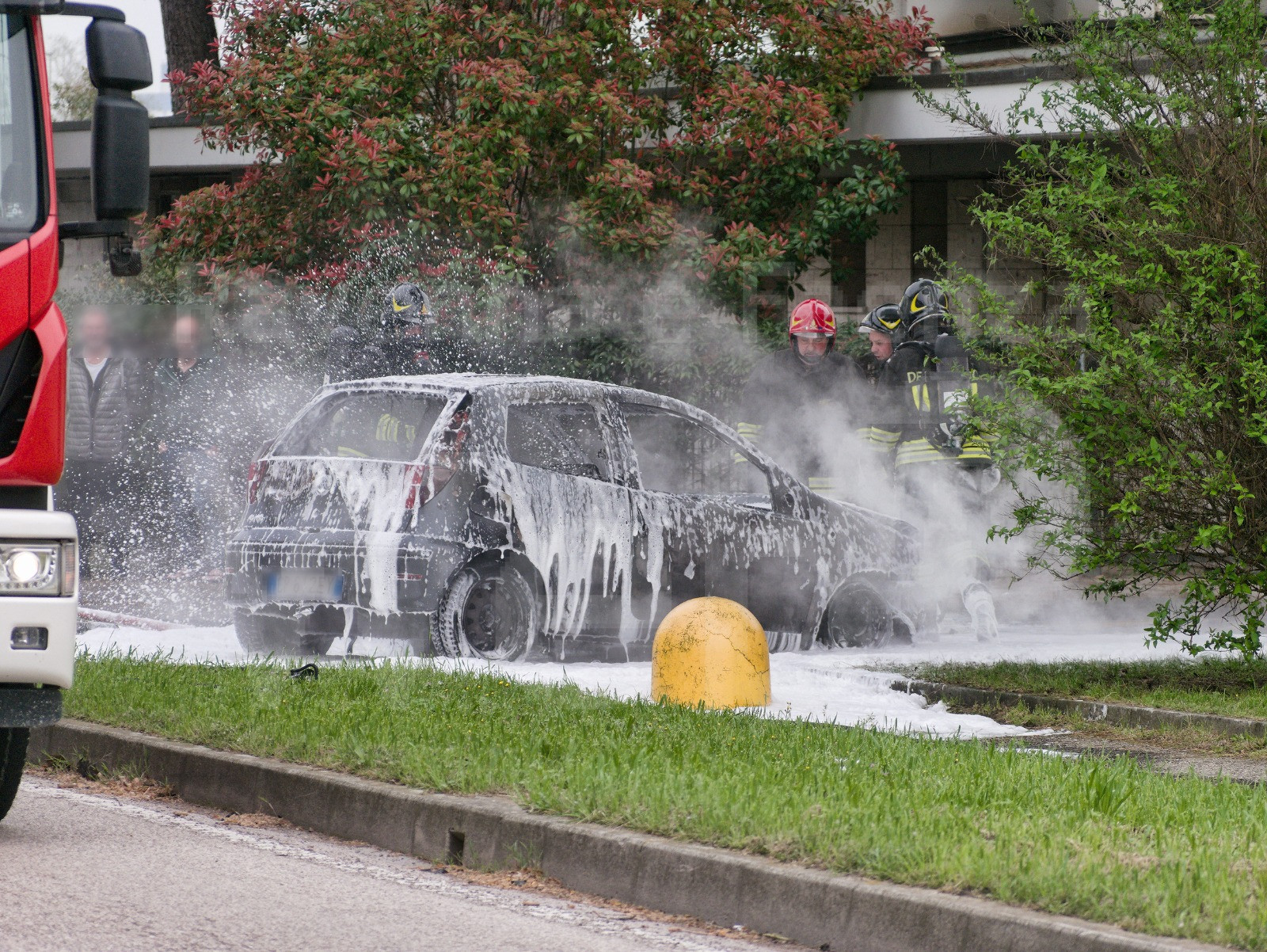 Sul posto sono dovuti intervenire i Vigili del Fuoco che hanno domato le fiamme con gli schiumogeni. L’auto è andata distrutta.