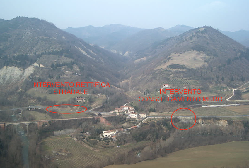 Il primo, a est della linea ferroviaria (lato Brisighella), consiste nel consolidamento ed adeguamento statico-sismico del rilevante e vetusto muro di sostegno del corpo stradale, che fiancheggia la sponda sinistra del Lamone; il secondo, a ovest del passaggio a livello (lato Marradi) consiste nella rettifica stradale della Brisighellese nel tratto compreso tra il ponte sul rio Puro Cielo e il ponte sul Lamone e nel contestuale consolidamento del versante afferente a tale tratto stradale.