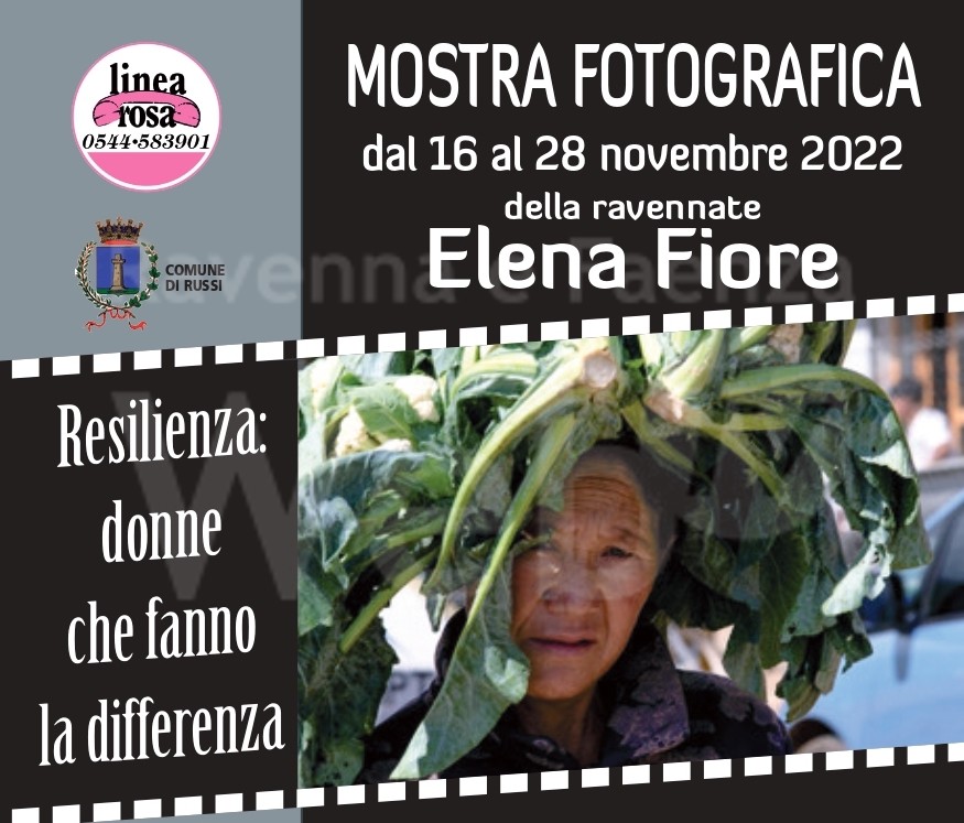 Mercoledì 16 novembre 2022, alle ore 18.00, presso la Biblioteca comunale di Russi (via Godo Vecchia 10) si terrà l’inaugurazione della mostra “Resilienza: donne che fanno la differenza”, curata da Linea Rosa in collaborazione il Comune di Russi, CNA Ravenna, il Collettivo “Racconti Ravennati” e Hobby Foto Club Ravenna. La mostra prevede l’esposizione delle fotografie della ravennate Elena Fiore, già comandante della Polizia Locale e da sempre interessata di fotografia, che dialogheranno con le Coroncine di mosaico create dalle mosaiciste del Collettivo “Racconti Ravennati”, ispirate agli scatti dei volti femminili di Elena per risaltarne i particolari.