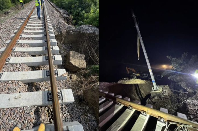 Pesanti i danni all’infrastruttura dove la forza dell’acqua ha asportato intere porzioni di rilevato ferroviario, compresi i sostegni della linea di alimentazione elettrica dei treni.