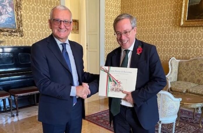 E’ stato ricevuto stamattina in Prefettura in una visita ufficiale l’Ambasciatore Britannico in Italia e San Marino Edward Llewellyn. L’incontro con il Prefetto di Ravenna Castrese De Rosa si è svolto nei Saloni di Rappresentanza nel corso del quale l’Ambasciatore ha sottolineato l’importanza storica e culturale dei legami tra Ravenna e il Regno Unito.