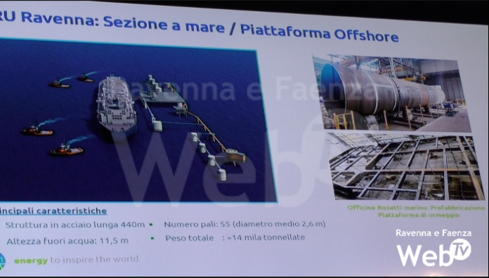 1. “è stato richiesto a Ravenna di prendere in esame progetti alternativi di collocazione della nave rigassificatrice più rassicuranti, ad esempio a Casal Borsetti, distante 20 chilometri dalla spiaggia e con un mare profondo 25 metri. È stato risposto, in sede sia tecnica che politica, come la soluzione scelta, a 8,5 chilometri dalla costa e a bassi fondali, fosse di più rapida attuazione rispetto agli altri rigassificatori confrontabili. Tra le suddette “ottimizzazioni”, c’è però la durata dei lavori, che aumenterà dai 27 mesi previsti a 48, escluso peraltro il tempo di smobilizzo del cantiere. Il progetto di Vado Ligure, dove si intende trasferire la nave rigassificatrice Golar Tundra al termine dei soli tre anni di permanenza a Piombino, prevede invece che l’impianto entri in servizio dopo 42 mesi, sei mesi di meno, anche se là, bastando sei ancore per ormeggiarla al meglio, non serve costruirle una diga di protezione, di cui invece necessita la nostra BW Singapore.