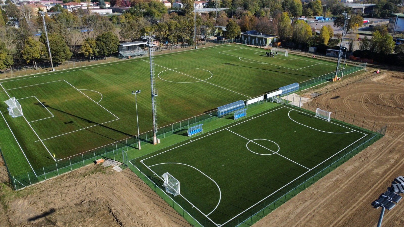 Proseguono i lavori di riqualificazione della Cittadella dello Sport della Graziola a Faenza, un progetto destinato a trasformare l’area in un polo sportivo moderno, sostenibile e multidisciplinare e maggiormente aperto alla città. Nelle scorse settimane sono stati completati e consegnati i nuovi campi: quello in erba sul lato destro accedendo all’impianto da via Graziola e quelli in sintetico per il calcio a 11 e il calcio a 5, sulla sinistra. In particolare, per quel che riguarda i campi in sintetico, la novità più rilevante è la loro realizzazione con un impianto erboso all’avanguardia. Si tratta infatti del primo campo in Italia omologato da LND Impianti Srl, società collegata alla Lega Nazionale Dilettanti, a utilizzare un intaso 100% vegetale, ricavato specificamente dalla frantumazione delle pigne. Questa scelta rappresenta una vera svolta in termini di sostenibilità e performance tecniche, poiché supera i limiti dei precedenti intasi organici e garantisce maggiore stabilità e un’eccellente resa sportiva.