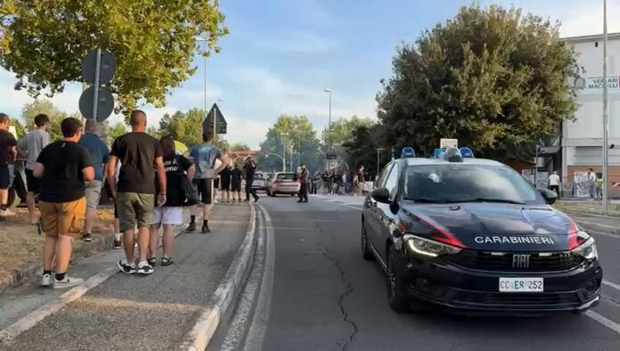 Lo scorso 15 settembre a Russi, mentre sul campo sportivo di “D. Neri” si disputava l’incontro di calcio, valevole per il campionato di 1° categoria, tra il San Pancrazio ed il Bagnacavallo, all’esterno dell’impianto sportivo i sostenitori delle due squadre, almeno un centinaio, si scontrarono violentemente con sassi, catene, bastoni e lanciando alcuni fumogeni. Il tutto fu notato da alcuni tifosi sugli spalti che ripresero le immagini degli scontri, a seguito dei quali ci furono anche diversi feriti. Sul luogo dei fatti, nell’immediatezza, intervennero diverse pattuglie dei Carabinieri, della Polizia di Stato e della Guardia di Finanza. Per tale episodio, le indagini sono state portate avanti dai militari della Stazione CC di Russi, in collaborazione con quelli di Bagnacavallo ed il personale della DIGOS della Questura di Ravenna e si sono articolate mediante la minuziosa visione di numerosi filmati. La raccolta di testimonianze e individuazioni video/fotografiche hanno portato all’identificazione di 9 partecipanti ai tafferugli, i quali sono stati denunciati alla locale Autorità Giudiziaria, con l’accusa di rissa in concorso. Inoltre il Questore di Ravenna, vista la gravità dei fatti, ha emesso nei confronti dei responsabili, il provvedimento di D.A.SPO con il quale è fatto divieto di accedere alle manifestazioni sportive per un periodo che va dai 5 agli 8 anni.