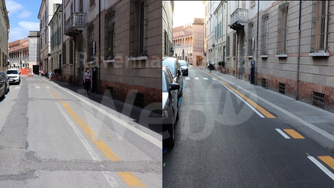 - eliminare i posti auto, addirittura 12, mantenendo solo le aree per lo scarico/carico delle merci.
