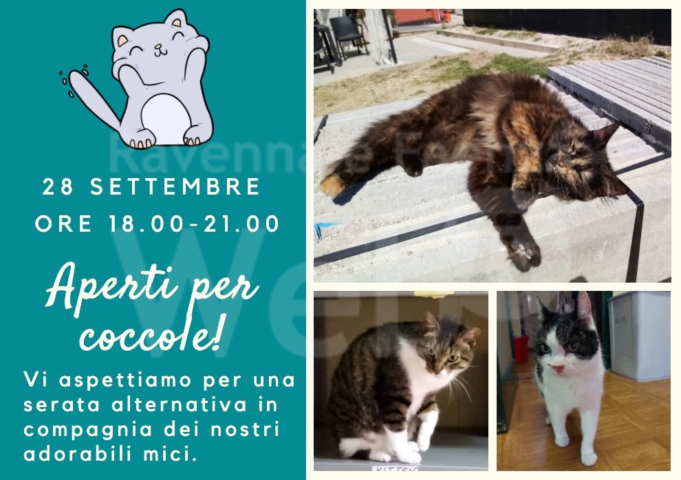 Domani l’Infermeria Felina di Bizzuno  sarà aperta dalle ore 18 alle ore 21 per accogliere i tanti amici che in questi mesi ci hanno seguito sulla nostra pagina facebook, ci hanno sostenuto con l’invio di tantissimo cibo e con le adozioni a distanza. Nel rispetto dei protocolli per il contenimento del contagio da Covid-19 abbiamo deciso di organizzare una serata per regalare coccole ai nostri mici piccoli e grandi, per farvi conoscere il nostro lavoro e perché no, per aiutarci nel volontariato sia in infermeria, che per far crescere i tanti cuccioli abbandonati.