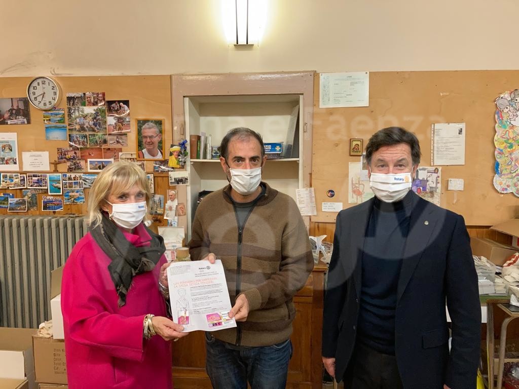 Il Rotary Club Faenza ha deciso di destinare le card alla Caritas ed al Centro d’ascolto diocesani. La consegna è avvenuta nel corso di una semplice cerimonia, alla quale erano presenti il Presidente del RC Faenza Alessandro Cantagalli, la tesoriera del Club Maria Teresa Samorini ed il direttore della Caritas, don Marco Ferrini.
