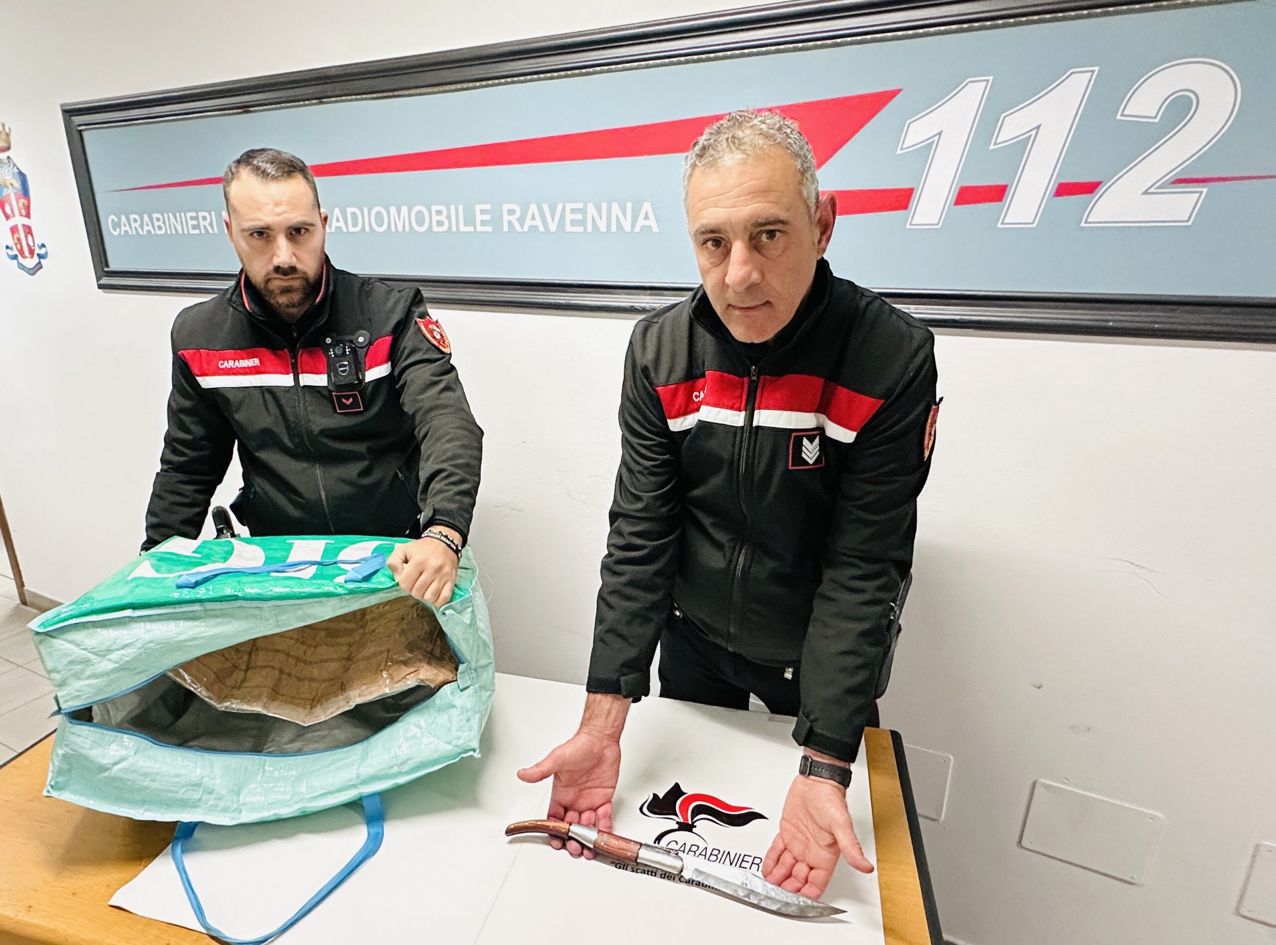 Una successiva perquisizione del veicolo e delle persone ha permesso ai militari di rinvenire, oltre ad un coltello a serramanico della lunghezza di 25 cm, numerosi altri generi alimentari, prodotti per la cosmesi e svariato materiale informatico. Tutta merce, per un valore superiore ai 5000 euro, che è poi risultata essere stata rubata in diversi centri commerciali della città. Il materiale rinvenuto è stato immediatamente restituito ai titolari dei negozi ed i tre fermati sono stati arrestati ed accompagnati in caserma. Oggi pomeriggio sono comparsi davanti al Giudice del Tribunale di Ravenna il quale, dopo aver convalidato il loro arresto, ha disposto, per uno, la misura cautelare degli arresti in carcere, mentre per gli altri due, il divieto di dimora nel comune di Ravenna.