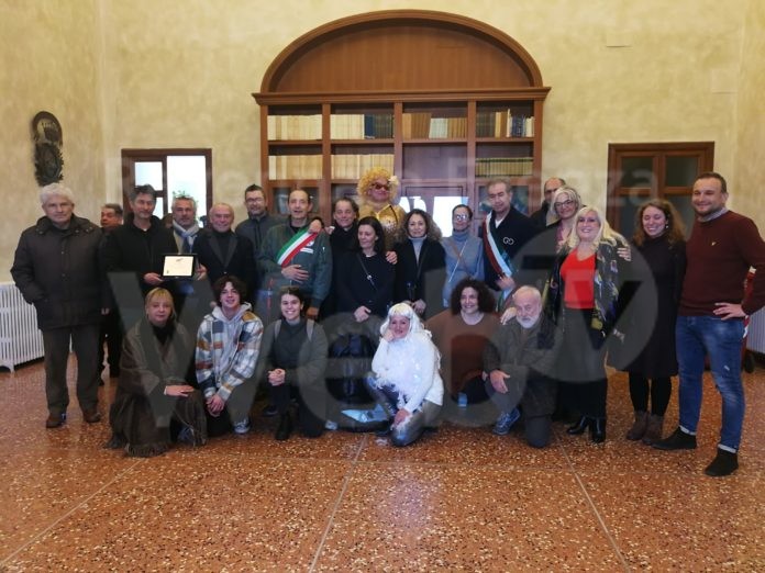 Il Sindaco oggi ha consegnato a un nutrito gruppo di Rumours una targa con la scritta: “Al gruppo Rumours Cervia, per organizzare spettacoli comici ricchi di simpatia e allegria con azioni di beneficenza e solidarietà a favore delle persone e della Città di Cervia. Con stima e gratitudine per il loro impegno sociale”.