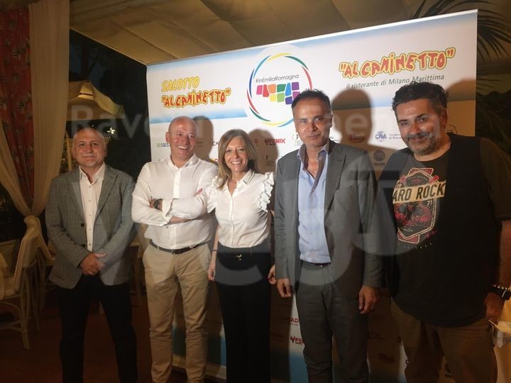 Quarta puntata del “Salotto Al Caminetto” giunto quest’anno alla sua 19° edizione, ospiti della puntata Paolo Maggioli (Presidente Confindustria Romagna), Paola Batani (titolare Select Hotels), Andrea Corsini (assessore regionale infrastrutture, commercio e turismo Emilia-Romagna) e Andrea Vasumi (comico e attore).