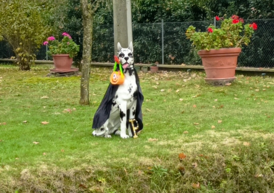 Vestito con cura, come fosse un attore di una commedia gentile, cambia abito ogni giorno. A volte indossa un mantello da supereroe, altre volte occhiali e libri, una zucca di Halloween, un fiocco, un cappello, una parrucca. Non è solo decorazione, è un gesto d’amore, una carezza silenziosa al viandante distratto, un segnale che dice “qui qualcuno si prende cura della bellezza”.