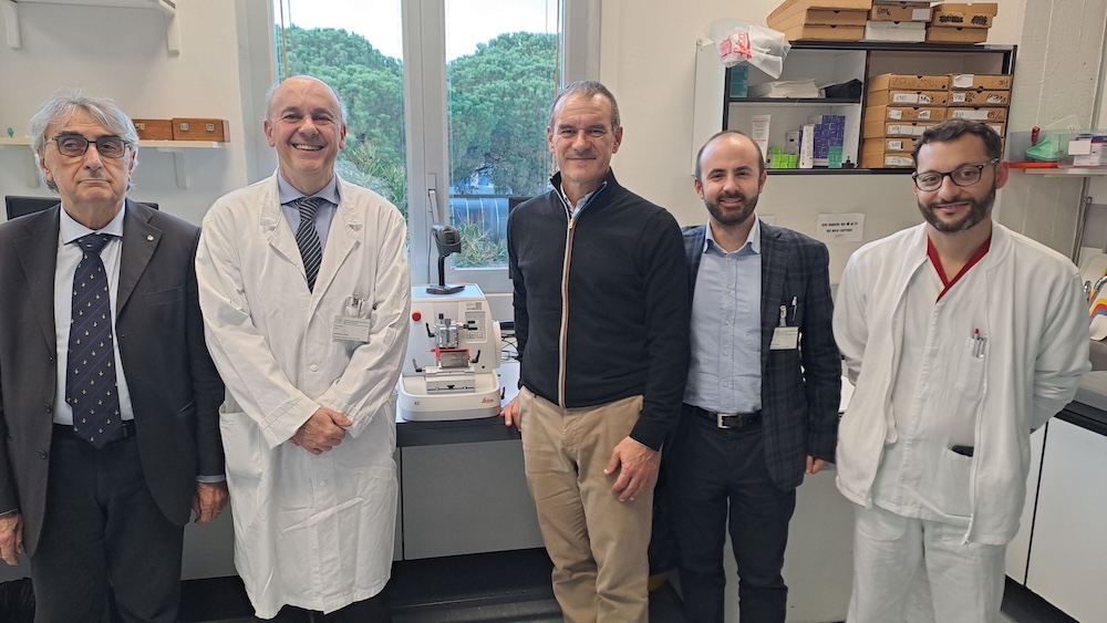 La donazione avviene praticamente a due anni di distanza esatti dal precedente intervento dello IOR all’interno del reparto diretto dal prof. Saragoni. A dicembre 2023 era stato infatti consegnato un altro dispositivo di ultima generazione, un microscopio del valore di 15.000 euro utilizzabile sia nel setting assistenziale, grazie alla possibilità di mostrare live, da remoto, i vetrini per discutere le caratteristiche morfologiche delle lesioni e dare il proprio contributo nella scelta del trattamento più appropriato per ciascun paziente all’interno dei Gruppi di Patologia Multidisciplinari; sia in quello prettamente didattico, non solo a beneficio degli studenti della Facoltà di Medicina e Chirurgia dell’Università di Bologna che nella città di Ravenna hanno sede ma anche per i clinici e colleghi di altre Unità Operative che si interfacciano quotidianamente con l’Anatomia Patologica. A riguardo del macchinario ricevuto invece nella giornata di ieri, sempre il prof. Saragoni ha sottolineato: «La U.O.C. di Anatomia Patologica dell’Ospedale “Santa Maria delle Croci” riveste un ruolo centrale nei percorsi diagnostico-terapeutici delle malattie oncologiche. Le fasi pre-analitiche diagnostiche rappresentano momenti cruciali e propedeutici al conseguimento di diagnosi accurate. Al fine di garantire una gestione clinica appropriata e tempestiva dei pazienti è necessario dotare il laboratorio di Anatomia Patologica delle risorse umane e tecnologiche necessarie e di organizzazioni funzionali al raggiungimento di tale obiettivo. A questo proposito, il potenziamento di una delle fasi pre-analitiche, il taglio delle sezioni di tessuto ottenute da biopsie e/o pezzi operatori, è da considerarsi strategico. L’acquisizione di uno strumento come il microtomo che riceviamo oggi, impiegato in tale fase, consentirà, a fronte di una riorganizzazione delle attività di laboratorio, di incrementare la produttività, migliorando significativamente i tempi di risposta delle diagnosi. All’Istituto Oncologico Romagnolo (IOR), che ha reso possibile la donazione del suddetto strumento, vanno i miei più sentiti ringraziamenti per la sensibilità e l’impegno profusi al servizio della cittadinanza del nostro territorio».