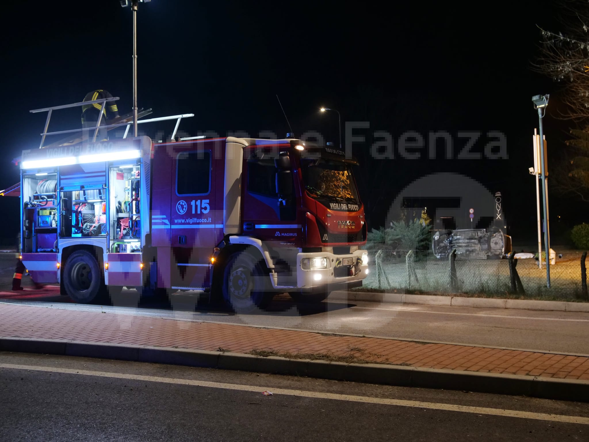 Un’auto, una Toyota, stava procedendo in direzione di Ravenna, è arrivata alla rotatoria con una velocità eccessiva, non fermandosi al segnale di precedenza, è decollata atterrando nell’area di pertinenza del chiosco, cappottando e terminando la propria corsa contro un cespuglio, su una fiancata.