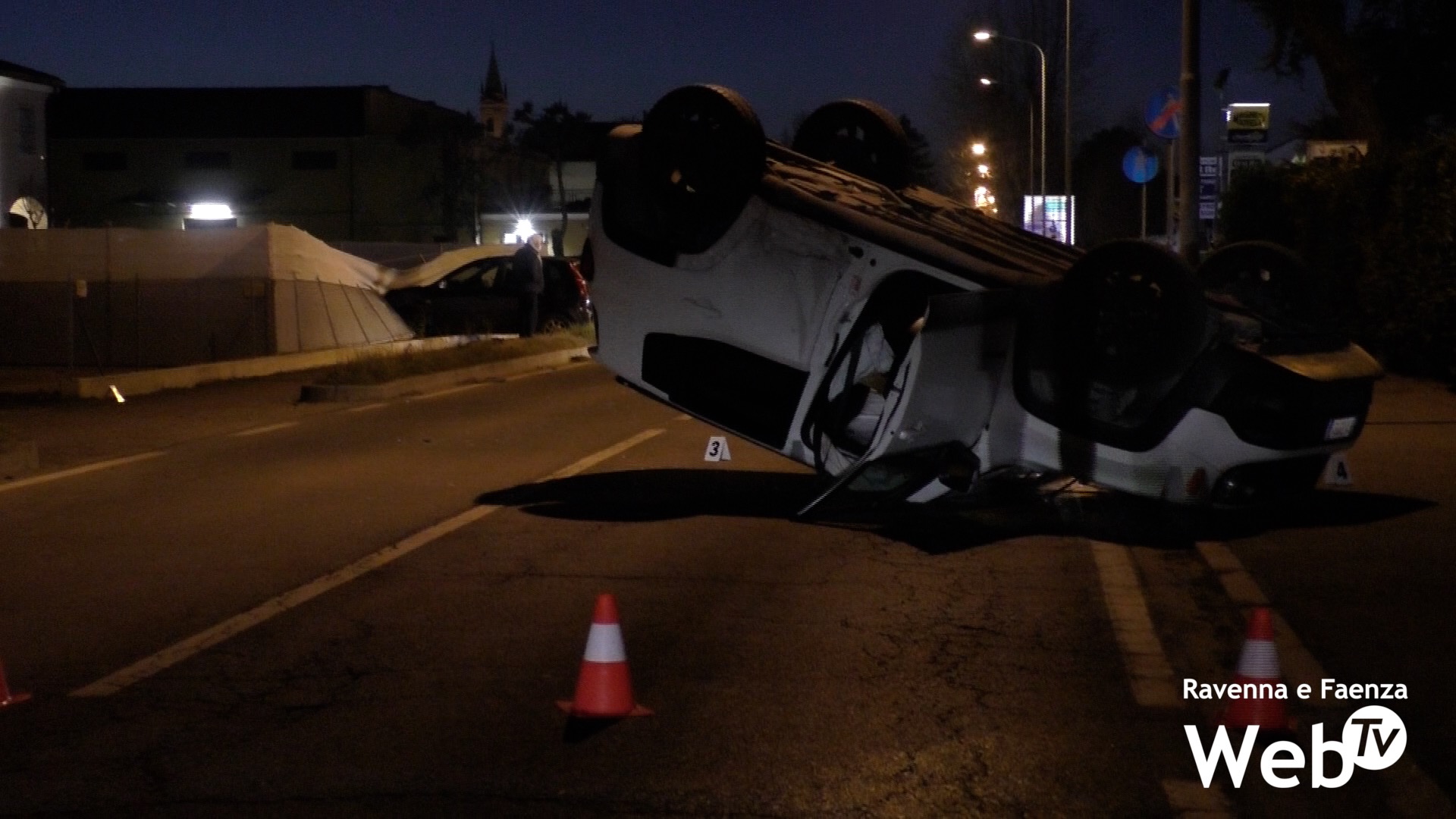 Incidente alle porte di Russi che ha bloccato dalle 18 la circolazione lungo via Molinaccio. Per cause al vaglio della Polizia Locale di Russi, il sinistro stradale ha coinvolto una Jeep Renegade, con a bordo una donna e suo figlio, e una Ford Fiesta condotta da un uomo. Dopo il violento impatto la Renegade si è ribaltata ruote all’aria, mentre la Ford Fiesta è uscita di strada, sfondando la recinzione di una casa e fermandosi a cavallo della pista ciclabile, fortunatamente deserta al momento dello scontro fra le due vetture.