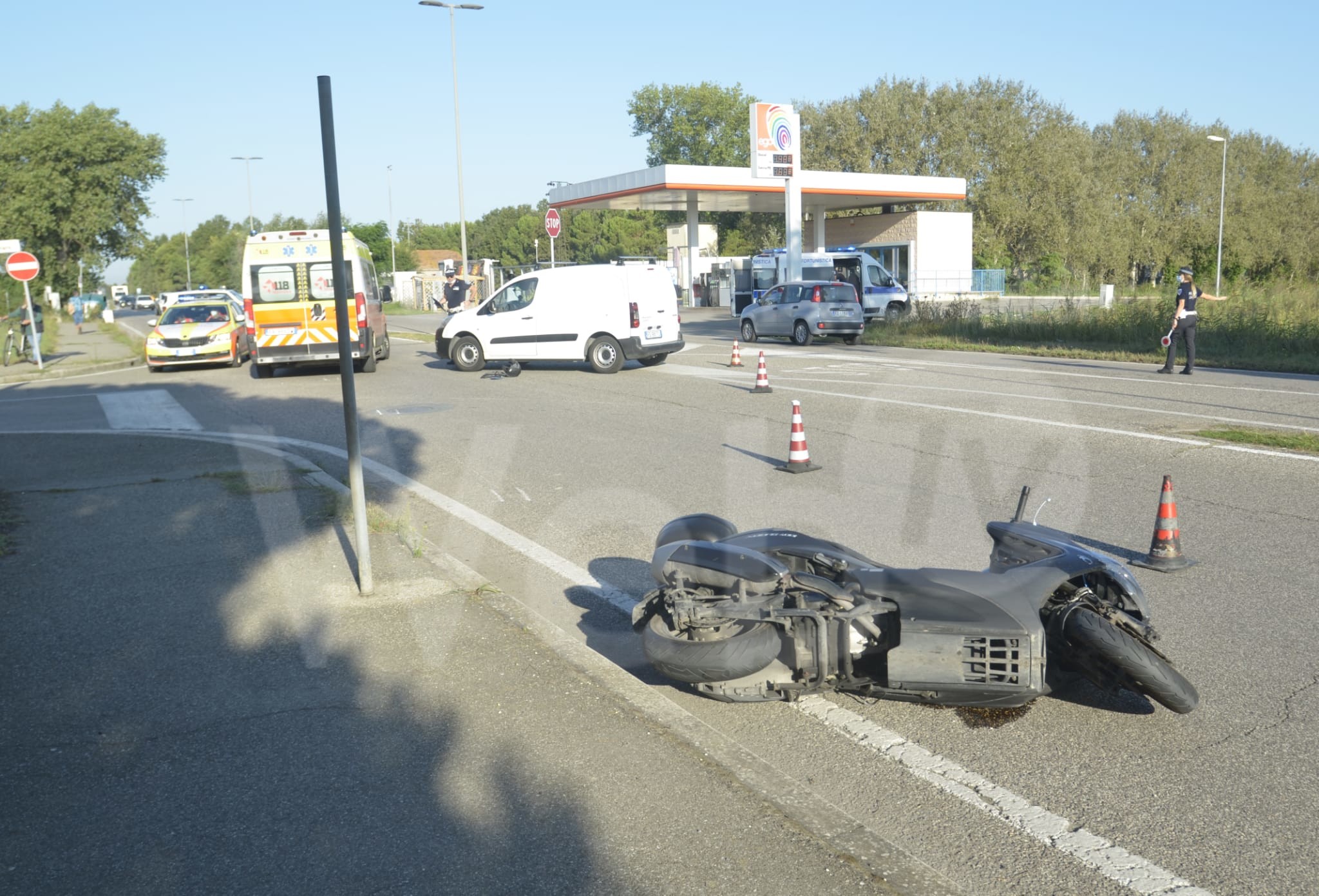Incidente dalle gravi conseguenze giovedì mattina a Lido Adriano per uno scooterista intorno alle 8 di mattina. All’altezza dell’incrocio fra via Tono e via Marone, lo scooterista si è scontrato con un’auto, una Peugeot, che proveniva in senso opposto, impegnata nella manovra di svolta a sinistra. Violento l’impatto sull’asfalto per il centauro. Immediata la richiesta di soccorsi. La centrale operativa del 118 ha inviato sul posto ambulanza, auto medica e l’elicottero. Dopo le prime cure sul posto, il ferito è stato caricato a bordo dell’eliambulanza e trasportato con il codice di massima gravità all’ospedale Bufalini di Cesena.
