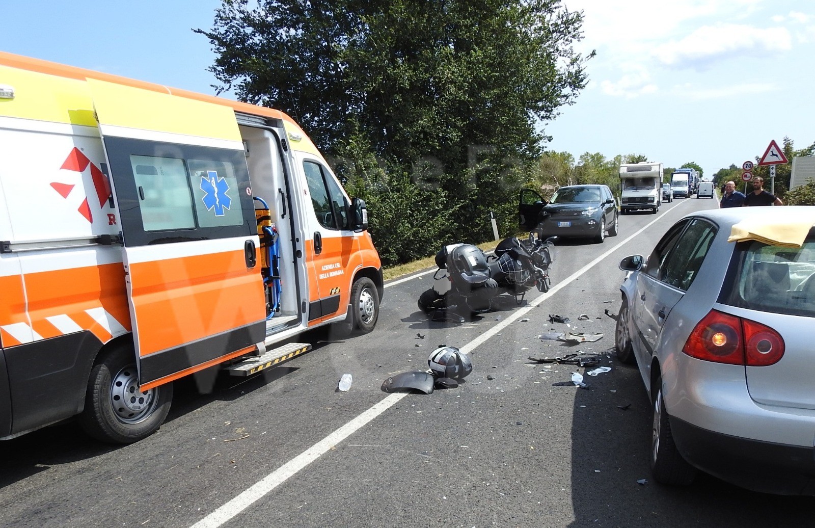 Brutto incidente questa mattina intorno alle ore 12 sulla statale Adriatica, all’altezza di Lavezzola. Secondo le prime ricostruzioni dei fatti un uomo sulla quarantina stava percorrendo la strada in sella ad una moto quando ha violentemente colpito una Volkswagen Golf guidata da una donna, cadendo poi sull’asfalto. L’uomo è stato poi soccorso dagli operatori del 118 che hanno optato di trasferire il ferito in elicottero all’ospedale Bufalini di Cesena, sebbene le sue condizioni non fossero critiche. La statale, nel tratto in cui è avvenuto l’incidente, è rimasta bloccata per circa un’ora. La donna alla guida della Golf non ha invece subito danni particolari.