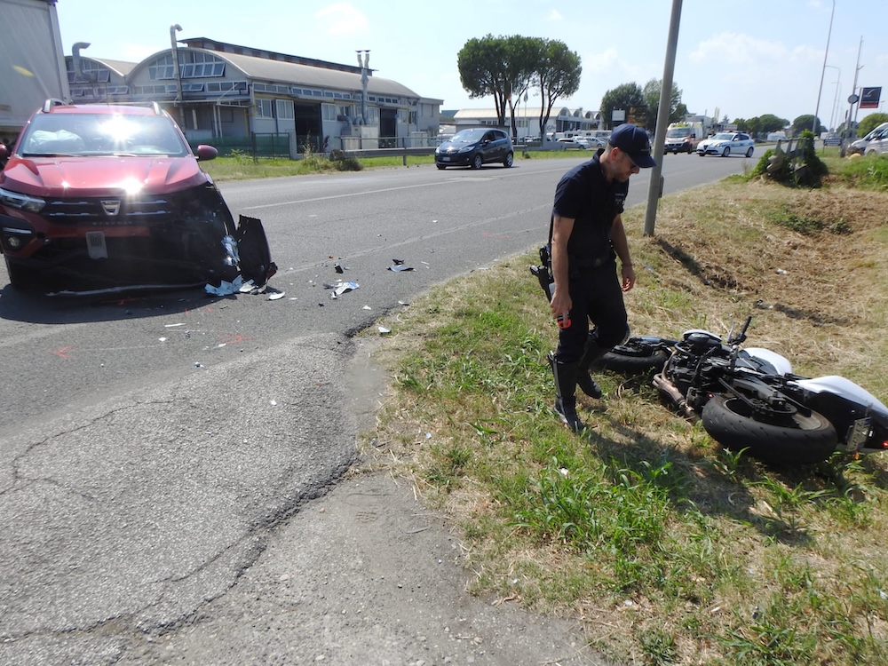 Secondo una prima ricostruzione, la moto si è scontrata con una Dacia condotta da un anziano automobilista, che stava effettuando una svolta a sinistra. L’urto è stato particolarmente violento: il motociclista è stato sbalzato a diversi metri di distanza, ma è rimasto sempre cosciente.
