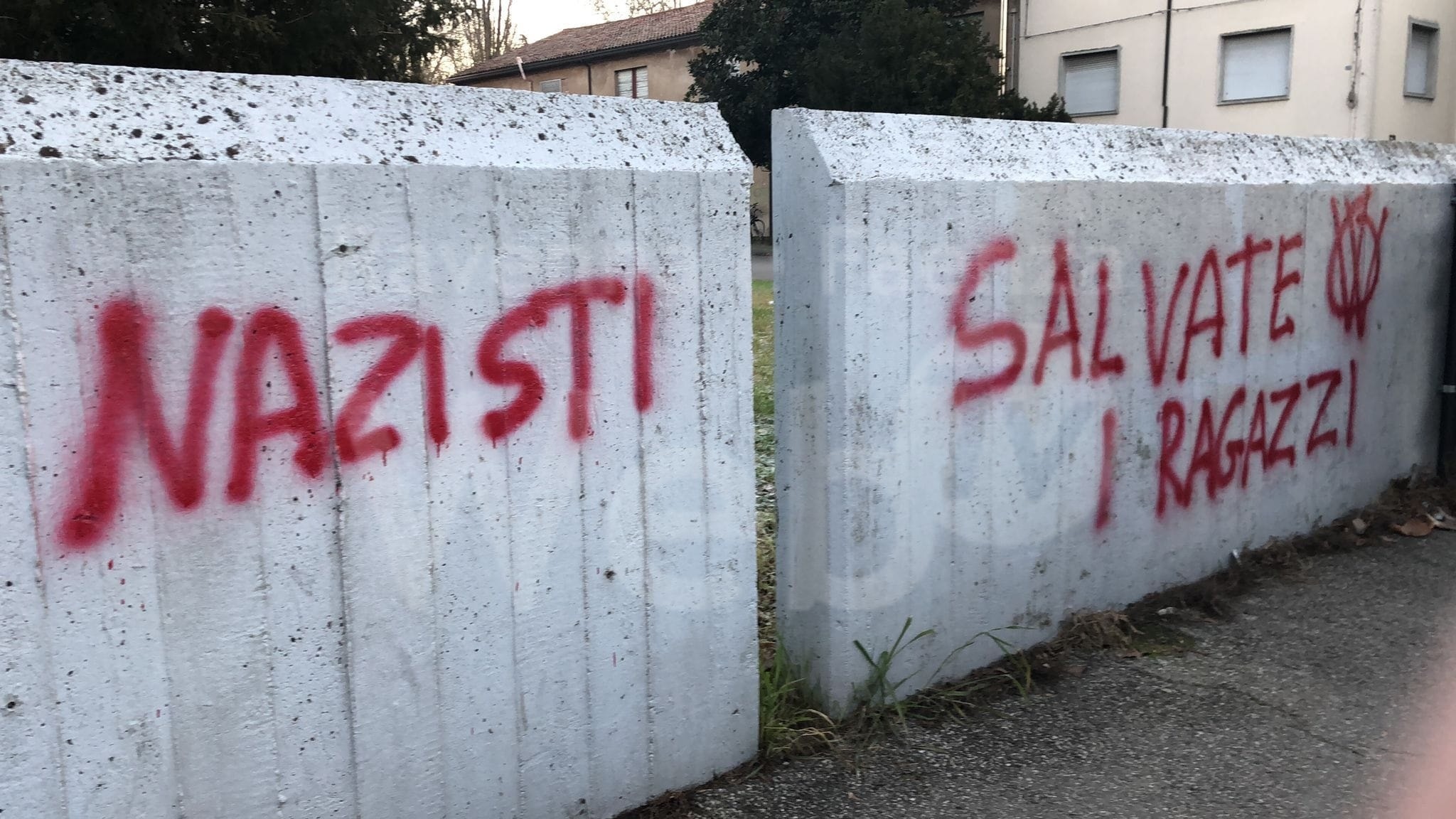 “Ranalli non è una comparsata è una realtà i vaccini uccidono”, è stato vergato in rosso sull’asfalto davanti al centro del Tondo con un riferimento a un post del primo cittadino dei giorni scorsi e poi “Nazisti” e “Salvate i bambini” su un muretto del polo tecnico Compagnoni.