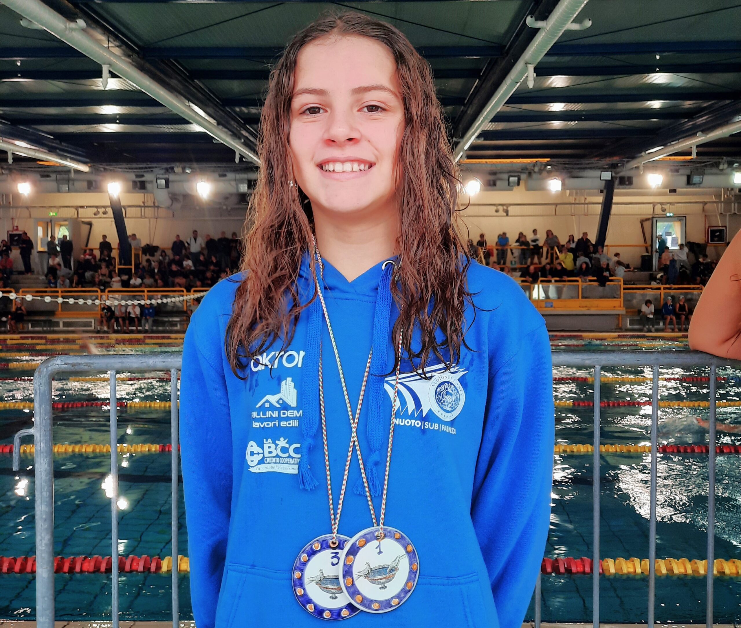 Penelope Sangiorgi (Assoluti, 2007) vince nei 200 misti e si piazza terza nei 200 dorso; Giada Minelli (Assoluti, 2008) è prima nei 200 farfalla e seconda nei 400 stile libero; Greta Amadei (Juniores, 2010) conquista la medaglia d’argento nei 100 farfalla. Medaglie “pesanti” arrivano anche dalla categoria Ragazzi. Beatrice Tambini (2011) si prende l’oro nei 50 dorso; Marta Zini (2012) è prima nei 50 rana, seconda nei 100 rana e terza nei 200 rana; Anna Della Monica (2012) conquista l’argento nei 50 rana e il bronzo nei 100 rana; Chiara Tamburini (2012) si piazza seconda nei 50 dorso.