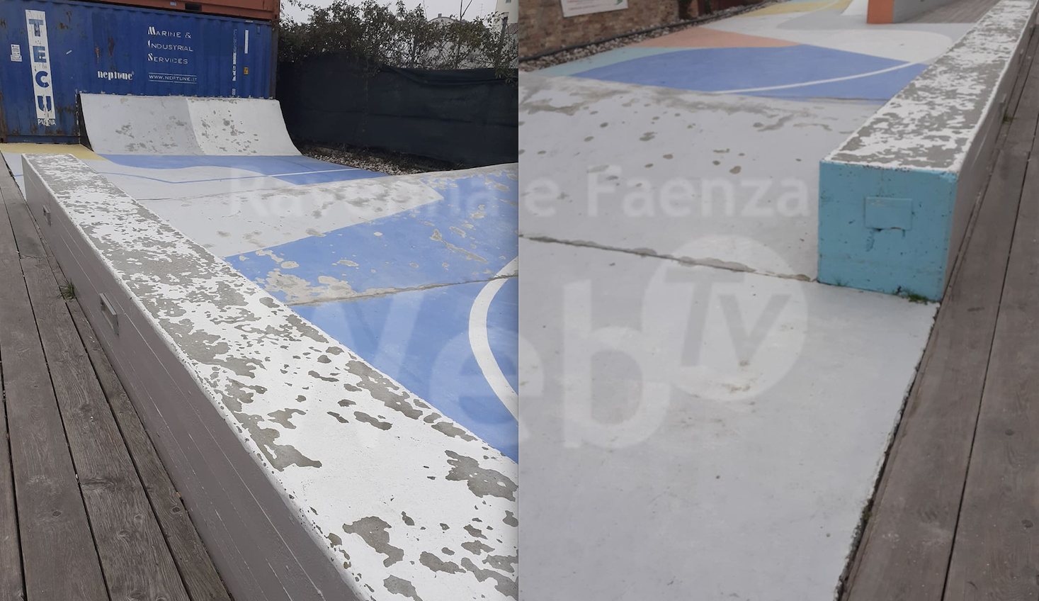 Parrebbe pericolosamente grave, poiché le piste da skateboard dovrebbero essere costruite in legno per attutire le cadute. E parrebbe altresì strano, visto che tutta la passerella della Darsena e la pavimentazione adiacente alla pista da skateboard, sono proprio costruite in legno. (Quindi nessuna motivazione etica di salvare degli alberi).