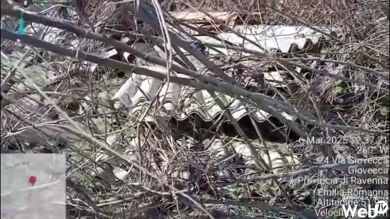 Sono presenti diverse lastre di eternit in condizioni di deterioramento che disperdono amianto nell’ambiente in prossimità della golena del fiume Santerno.