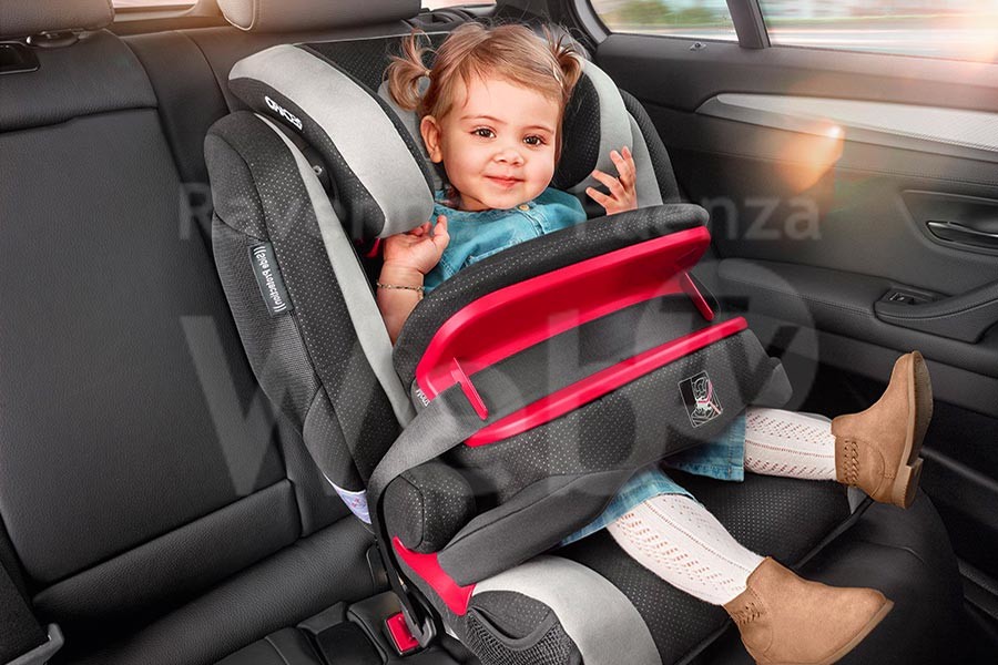 Prima di avviare la marcia, bisogna accertarsi che lo schienale del seggiolino sia ben appoggiato al sedile della vettura e che le cinture presenti sul dispositivo siano sempre allacciate, anche per brevissimi tragitti.