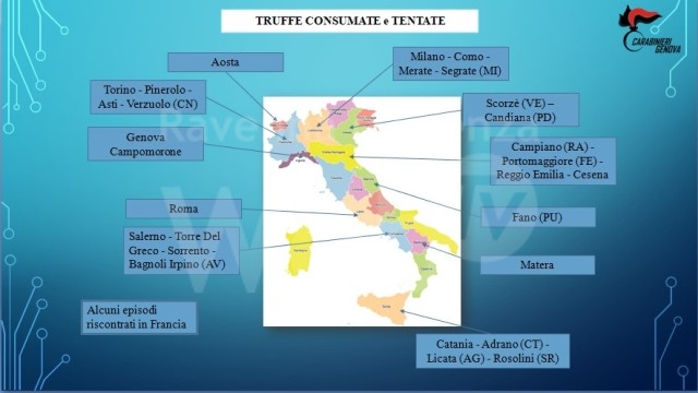 I carabinieri del comando provinciale di Genova hanno eseguito 14 misure cautelari nei confronti di una banda di presunti truffatori che secondo le indagini ha svuotato i conti correnti di decine di persone. Denunce sono arrivate anche dal territorio ravennate.
