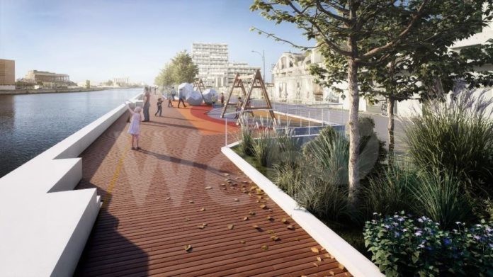 L’idea progettuale resta quella di privilegiare il rapporto visivo con l’acqua, prevedendo un percorso pedonale a ridosso della banchina, accompagnato da una fascia di separazione rispetto alla strada disegnata con verde, panchine, rampe, attrezzature varie di supporto. L’illuminazione sarà una prosecuzione di quella già esistente, con una implementazione degli impianti presenti. Ci saranno anche diverse “isole tematiche” di 6 metri per 25 dedicate al movimento, al fitness, al relax, al gioco bimbi e all’estensione all’esterno di attività commerciali.