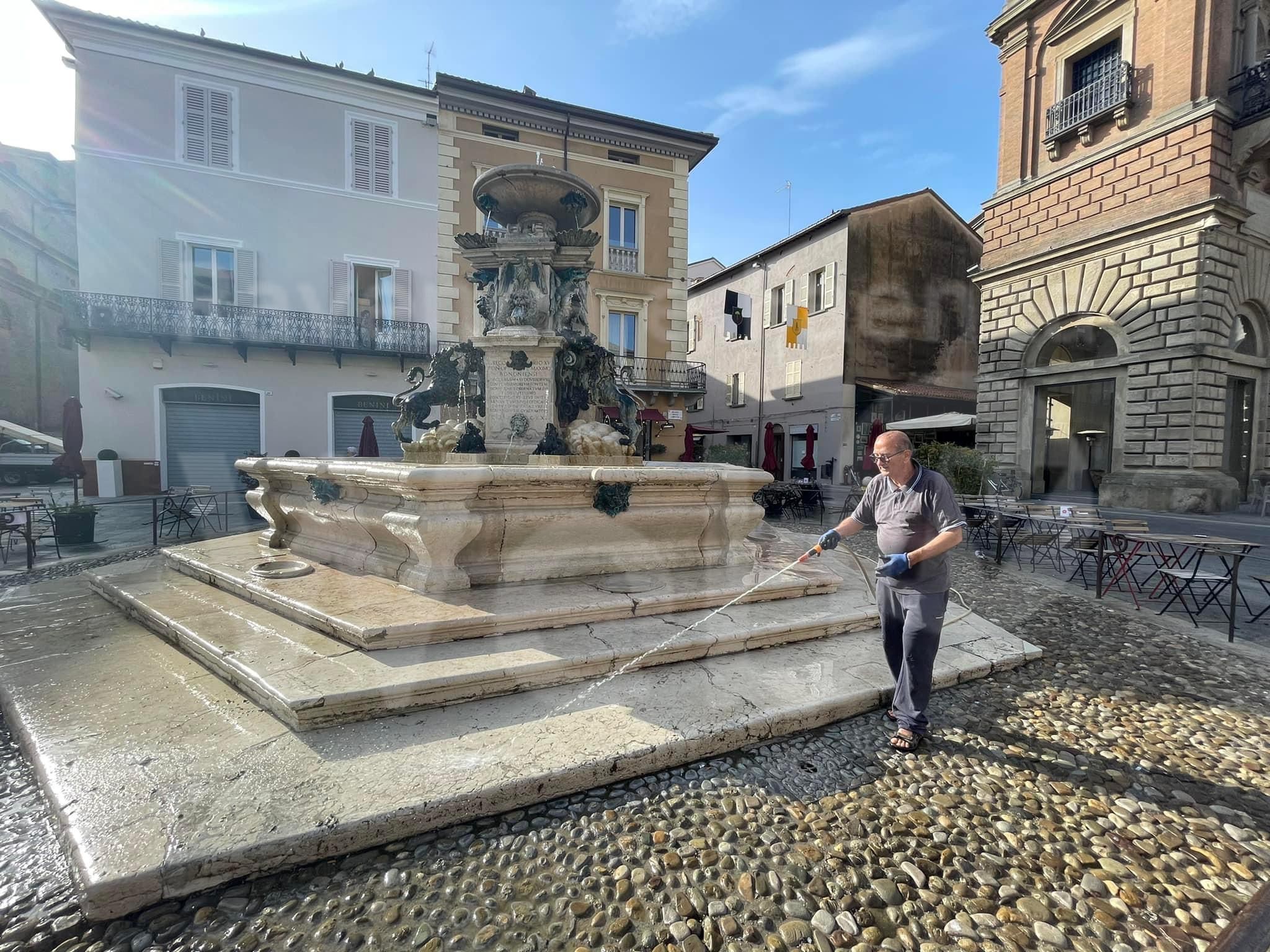“In relazione all’emergenza siccità, l’associazione faentina Amici della fontana che, in base a una convenzione con il Comune di Faenza, con i loro tanti soci, si occupa della manutenzione gratuita delle fontane ornamentali della città, fanno sapere che tutti i siti a loro affidati sono ‘a ricircolo’ di acqua, quindi senza alcuno spreco. Nei giorni scorsi i volontari si sono occupati di pulire la vasca principale della fontana monumentale di piazza della Libertà e successivamente è stata rimessa in funzione anche per alleviare la calura estiva. L’unica fontana nella quale l’acqua è stata interrotta, è quella della Prospettiva del Fontanone, perché non ‘a ricircolo’ ma ‘a perdere’.