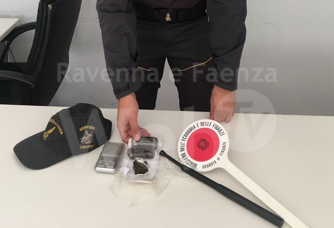 I finanzieri della Squadra Cinofili del Gruppo di Ravenna si sono avvicinati e hanno fermato il viaggiatore dopo l’inequivocabile segnalazione del cane antidroga Lucky. È così iniziata una perquisizione che ha portato al rinvenimento di 3 panetti di hashish, un bilancino di precisione e un manganello telescopico.