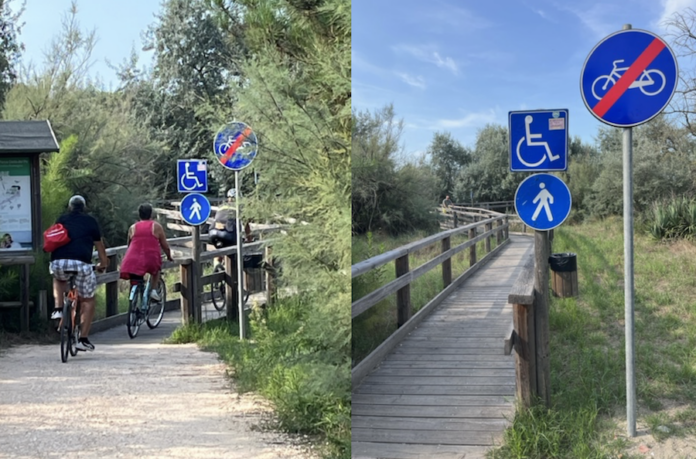 “La passerella del Parco Marittimo di Marina che si snoda parallelamente alla linea della costa nel retro degli stabilimenti balneari è un percorso immerso nella pineta il cui transito è consentito ai pedoni e ai ciclisti. Una parte di fronte all’ex colonia opportunamente segnalata, tuttavia, è consentita solo ai pedoni, ma la mancanza di senso civico spesso fa registrare il transito anche di persone in bicicletta. Questo produce spesso inconvenienti di vario genere oltre a rappresentare un reale pericolo per coloro che procedono camminando in tale percorso. Per scongiurare incidenti ma allo stesso tempo per fare rispettare la chiara segnaletica collocata a lato della passerella, si rende necessario il pieno rispetto delle regole comportamentali. Oltre ad ipotizzare l’installazione di eventuali tornelli proprio per scoraggiare i ciclisti irrispettosi delle regole. Per queste ragioni si esorta la Polizia locale nelle frequenti presenze lungo le strade dei lidi, a vigilare affinché vi sia una fruizione corretta e serena del citato tratto.