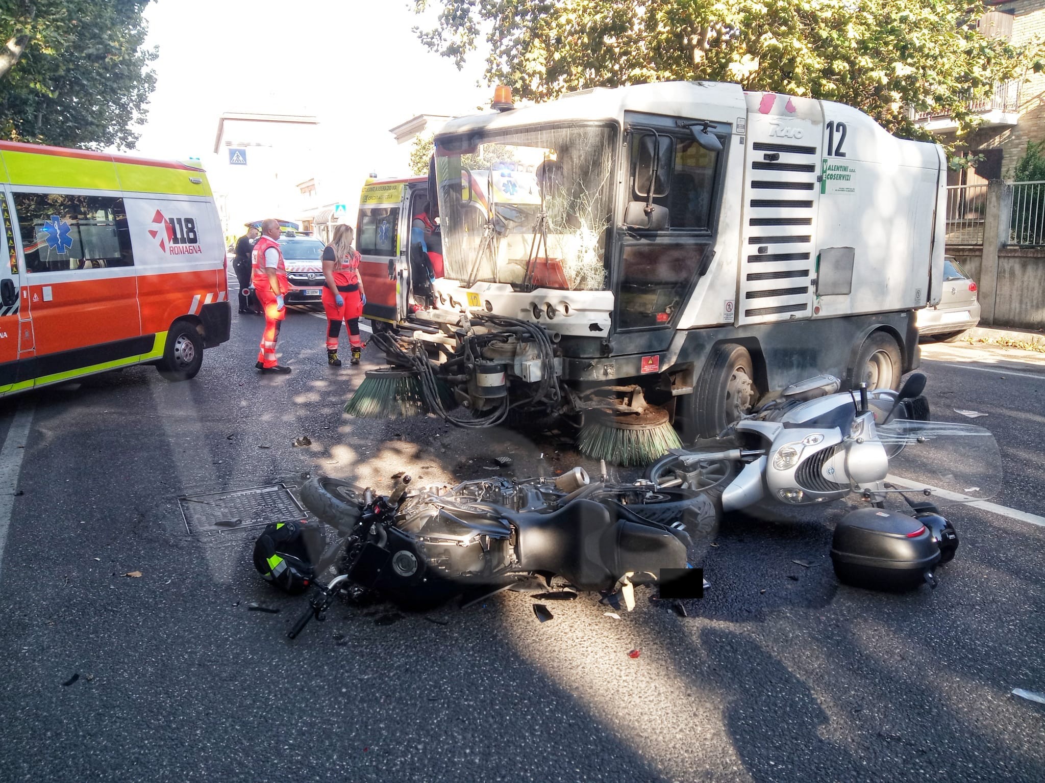 Incidente nella mattinata di mercoledì in via Trieste, all’altezza del civico 13, intorno alle 7.30, dove una spazzatrice per la pulizia della strada si è scontrata con una moto e uno scooter. La dinamica dell’incidente è al vaglio della polizia locale di Ravenna. Dopo l’urto, motociclista e scooterista sono caduti violentemente a terra ed è stato necessario l’intervento del personale del 118, arrivato con due ambulanze e l’automedica. Entrambi i centauri sono stati trasportati all’ospedale Bufalini di Cesena. Le conseguenze più gravi sono state a carico del motociclista. Ferito anche il conducente della spazzatrice, trasportato all’ospedale di Ravenna.