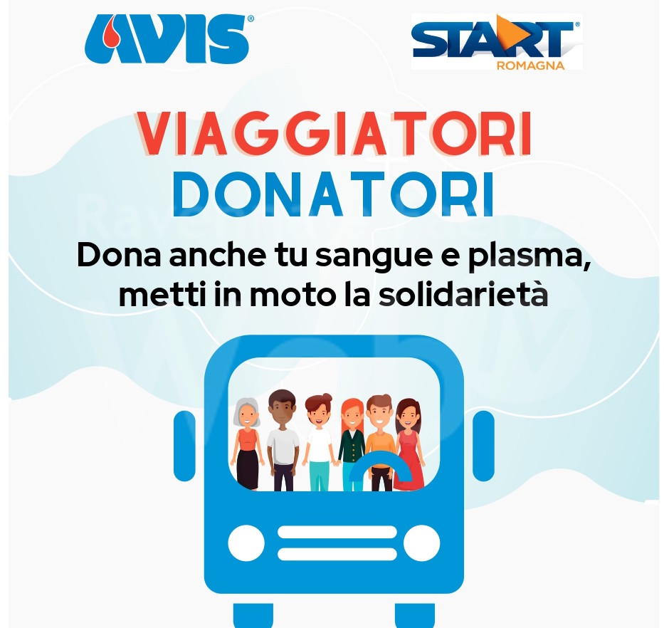 Al fine di ampliare la platea dei donatori, per rispondere alle numerose esigenze del territorio e non solo,Avis Romagna e Start Romagna hanno unito le forze. Dal mese di aprile, a bordo dei mezzi di Start Romagna, si è avviata una campagna di promozione sociale che mira a sensibilizzare gli utilizzatori del trasporto pubblico sull’importanza e sulla necessità di donare sangue.