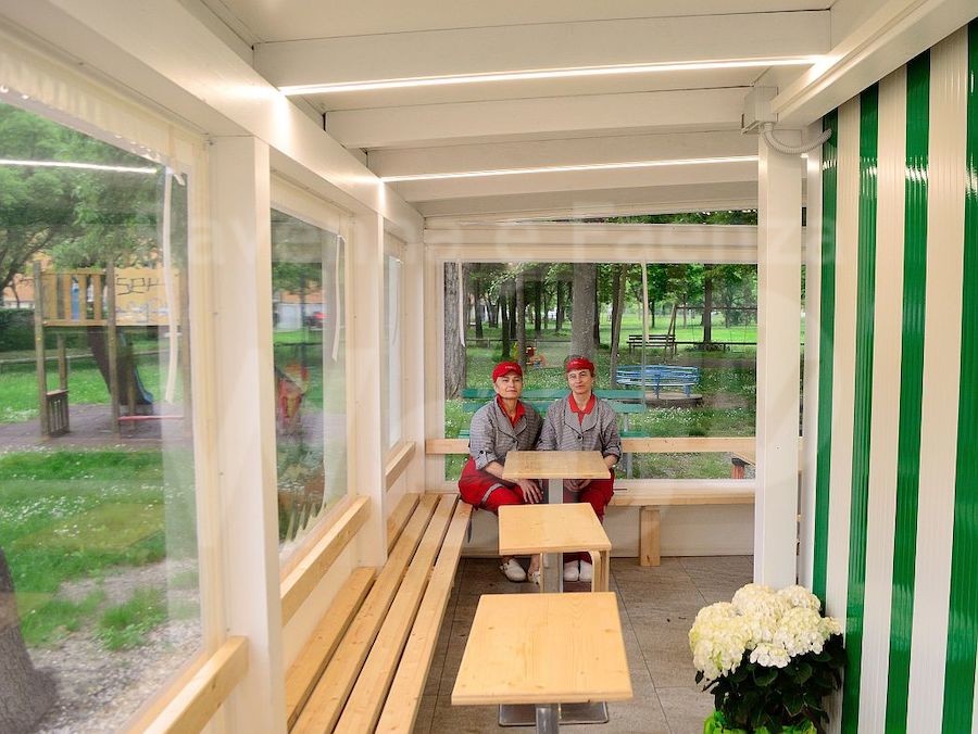 Il chiosco, che si affaccia col suo arioso pergolato verandato su un bel parco pubblico, offre ai clienti un’ampia scelta di proposte, nonché varie tipologie di impasti e farciture, anche vegetariane e vegane, proprio per tutti i gusti.