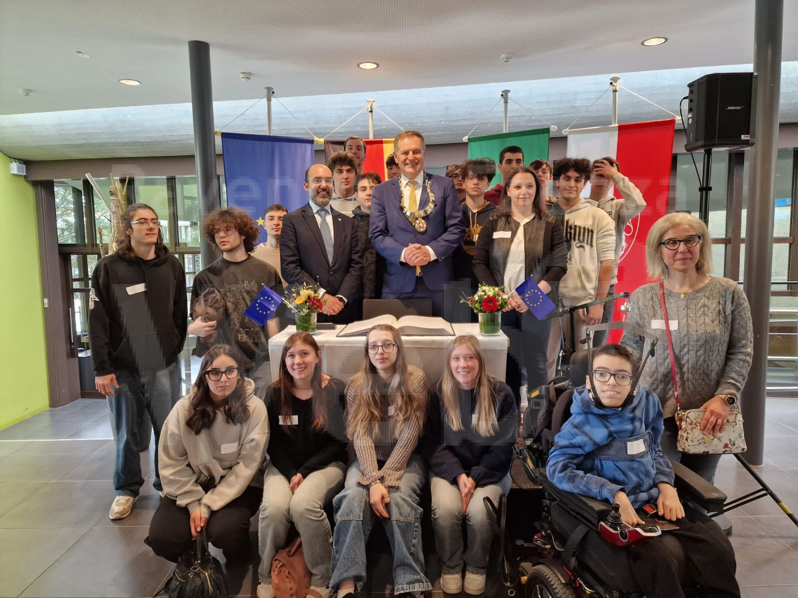 I partecipanti del progetto “One day at the European Parliament” della classe 4BI dell’ITIP Bucci di Faenza sono: Sara Cavina, Filippo Vita, Simone Ugolini, Enea Tanesini, Francesco Bordini, Andrea Lippi Pagliai, Giovanni Colori e Simone Iudica. I colleghi della classe 4DM sono: Mattia Rossi, Flavia Laghi, Giorgia Mazzoni, Viola Mazzoni, Tommaso Gennari e Alessandro Mazzotti; per la classe 4CM: Nicola Albonetti e Filippo Dall’Alpi. Docenti: Anna Balestrazzi e Pia Prencipe. Young manager faentini del progetto NEXT: Rolando Leotta e Amleto Vassura. La delegazione è stata ricevuta dal Sindaco di Schwäbisch Gmünd Richard Arnold.