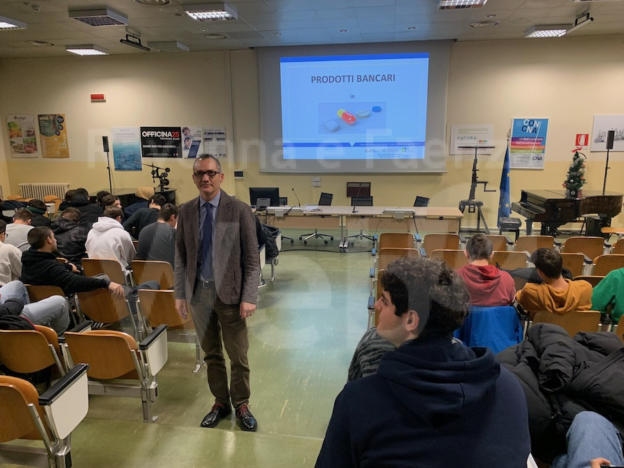 Ne è riprova la partecipazione entusiastica ed attenta degli studenti delle classi III, IV e V dell’indirizzo tecnico del Polo tecnico professionale di Lugo alla lezione tenuta da Roberto Vicari, esperto di temi finanziari e responsabile dell’Ufficio Private Banking della Cassa di Ravenna in piazza del Popolo, e coordinata dalle docenti Cristina Galamini, collaboratrice della Dirigente scolastica e Giovanna Bosi, referente per l’educazione finanziaria del Polo tecnico professionale.