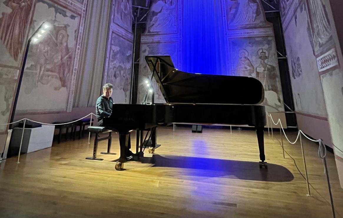 Uno straordinario successo di pubblico, una sala esaurita con molti spettatori in piedi ed una straordinaria interpretazione musicale hanno decretato il clamoroso successo della prima serata di ‘Notti trasfigurate – Mosaici di musica e poesia’, alla Sala del Refettorio del Museo Nazionale. Il primo dei quattro concerti del venerdì sera programmati per la rassegna sostenuta dalla Fondazione Cassa di Risparmio di Ravenna presieduta da Ernesto Giuseppe Alfieri e organizzata dall’Associazione Angelo Mariani diretta da Romano Valentini è andato ben oltre le più rosee aspettative: l’accuratezza nella preparazione del programma e l’attenzione costante nel dare al pubblico alcuni elementi che possano motivare ulteriormente l’ascolto, hanno letteralmente ‘trafigurato’ l’esecuzione del Maestro Giuseppe Albanese regalando ai presenti dense ed uniche emozioni. Altrettanto intensi gli applausi che la sala ha tributato ad Albanese, applausi che hanno meritato due bis: il notturno op.9 n.1 per la mano sinistra di Skrjabin e ‘The man I love’, la celebre canzone di G.Gershwin.