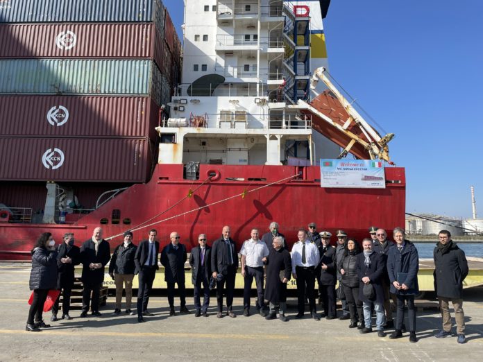 Tra i presenti a ricevere l’equipaggio, i rappresentanti delle istituzioni con il Direttore della Dogana Giovanni Mario Ferente, il Segretario della Autorità di Sistema portuale di Ravenna Paolo Ferrandino, il comandante della Guardia di Finanza di Ravenna colonnello Mercatili, il capo della Sezione Tecnica della Capitaneria di Porto capitano di fregata Mario Pennisi, il management della compagnia di navigazione Rif Line (il Ceo Francesco Isola, il Presidente Giorgio Voria e il Fleet manager Luca Scagliarini), il management di TCR (con il Presidente Giannantonio Mingozzi, il Direttore Milena Fico e il responsabile commerciale Alessandro Battolini), l’Agenzia marittima Archibugi con Alessandro Archibugi, Alessandra Riparbelli doganalista di Casa di Spedizioni RIparbelli, Peter Robino commerciale di Contship Italia, che hanno consegnato al comandante della nave Maciej Grabowski il crest dell’azienda a titolo di benvenuto.