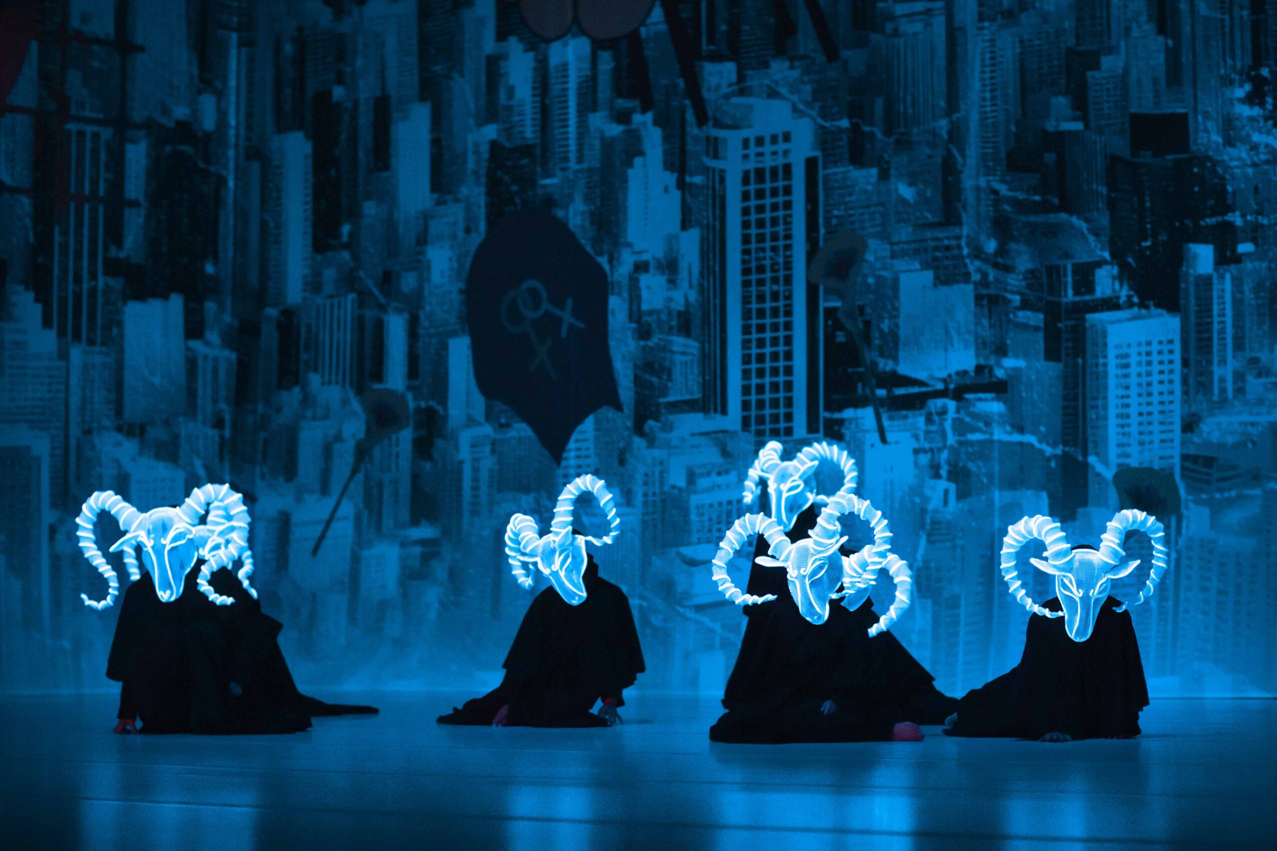 Le tre creazioni proposte da questa Trilogia dell’estasi, ora in tournée dopo il debutto al Maggio Musicale Fiorentino, hanno per denominatore comune non solo il linguaggio di Zappalà ma anche il dispositivo scenico che di volta in volta limita, amplifica e modifica la performance. Per esempio, nel primo tassello del trittico, L’après midi d’un faune di Debussy è danzato in uno spazio ristretto e confinante e la scena si apre con un fauno che si specchia in una sezione di luce. Nel Bolèro è invece esplicito il riferimento-omaggio a Eyes Wide Shut di Stanley Kubrick, con un crescendo di movimenti rotatori supportato dall’ossessività della melodia di Ravel e dal sapore fortemente esoterico. Il Sacre non può che essere una dionisiaca esplosione di movimenti e convulsioni. Tra bizzarre maschere, coloratissimi costumi e inserti techno, protagoniste rimangono le relazioni umane, di volta in volta negate o esaltate in una riflessione coreografica sulle derive della società contemporanea.
