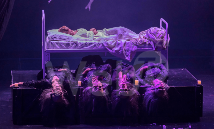 Il termine rapsodia suggerisce il carattere inedito e visionario di questa produzione, capace di assecondare la vocazione frammentaria delle opere originali. Senza vincolarsi a una narrazione lineare ma procedendo per associazioni quasi oniriche, variazioni e trasfigurazioni, Faust rapsodia si avventura fra pagine di Schumann e il poema goethiano – entrambi in traduzioni italiane ottocentesche, rispettivamente di Vittorio Radicati, genero del compositore, e di Andrea Maffei. Il Faust di Edoardo Siravo, che lamenta il nulla che lo attanaglia, stringe un patto con il Mefistofele di Roberto Latini: in cambio di una vita sotto il segno delle passioni più intense, alla propria morte Faust diventerà servo di Mefistofele. Faust assiste a una rappresentazione teatrale il cui protagonista è egli stesso da giovane – il baritono Vito Priante – intento a corteggiare Margherita (Elisa Balbo). La seduzione della giovane ne determinerà la rovina, accelerata dalla morte di Valentino, fratello di Margherita, per mano dello stesso Faust. In chiesa Margherita è tormentata da uno spirito maligno (Riccardo Zanellato), presagio della morte che l’attende in prigione, e a nulla vale che Faust chieda a Mefistofele di salvarla. Accecato dagli spiriti di quattro vecchie – Fame, Debito, Miseria e Cura, quest’ultima sempre Elisa Balbo – Faust muore ma l’intercessione di “colei che un tempo fu Margherita” assicura la grazia divina a colui che ha sempre anelato al “bello eterno femmineo”. Il cast si completa con il gruppo dei DanzActori e gli interpreti che da anni condividono con il regista l’esperienza intorno all’opera di Goethe nel contesto formativo del Belfort Theatre Campus a Piuro, tra Lombardia e Svizzera. Il team creativo conta invece Ezio Antonelli (scene, sculture e video), Anna Biagiotti (costumi) e Fabrizio Ballini (luci).