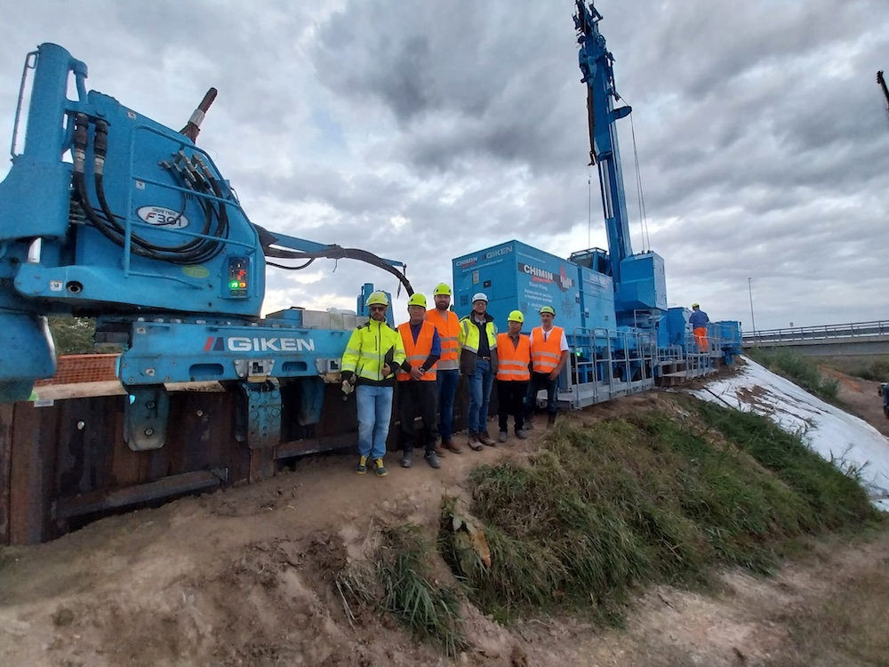 Un insieme complesso di macchinari, tra cui un particolare tipo di pressa idraulica a zero vibrazioni e bassa rumorosità, il ‘Silent Piler’, fabbricato dall’azienda giapponese Giken. È quello che sta lavorando, per l’infissione delle palancole d’acciaio, nel cantiere lungo l’argine sinistro del fiume Lamone, a Villanova di Bagnacavallo, nel ravennate: si tratta dell’unico sistema (a ‘treno’) nel suo genere a essere utilizzato attualmente in Europa. Al momento sono già state infisse 150 palancole, per un centinaio di metri di argine.