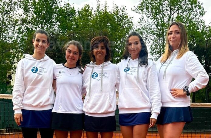 La prima squadra femminile del Tennis Club Faenza si prepara, dopo il ripescaggio, ad affrontare il campionato nazionale di Serie B2, che inizierà domenica 28 aprile. La formazione manfreda è composta da Alessia Ercolino 2.6, Sandy Mamini 2.8, Aurora Fabbri 2.8, Clara Sansoni 2.8 e Veronica Valgimigli 3.1. Il gruppo è orfano giocoforza di Chiara Arcangeli, operata il 20 dicembre scorso al legamento crociato e al menisco del ginocchio destro e attualmente in fase di riabilitazione, ma non recuperabile per tempo (dovrebbe tornare in campo a fine estate). Alle confermate Ercolino, Valgimigli e Mamini, sono state aggiunte la giovane promessa Aurora Fabbri e la forlivese Clara Sansoni, al suo primo anno nel circolo manfredo.