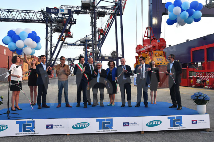 Terminal Container Ravenna ha inaugurato ieri (13 maggio) la nuova gru e festeggiato vent’anni di attività con una cerimonia che si è tenuta al porto di Ravenna nel piazzale del terminal alla presenza delle autorità e delle alte cariche aziendali. Hanno preso parte all’evento il Sindaco e Presidente della Provincia di Ravenna Michele de Pascale; Andrea Corsini Assessore a turismo, commercio, infrastrutture e trasporti della Regione Emilia-Romagna; Daniele Rossi Presidente AdSP mare Adriatico centro settentrionale e i vertici delle aziende azioniste di T.C.R. Riccardo Sabadini Presidente Sapir e Alfredo Scalisi AD Contship Italia Group e infine per l’azienda Liebherr, costruttrice della gru, l’AD Gerry Bunyan.