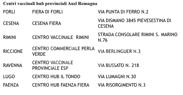 A partire da oggi lunedì 25 ottobre la somministrazione della dose booster di vaccino anti covid -19 è estesa anche al personale sanitario che svolge attività al di fuori dell’Azienda USL della Romagna. Tutti gli esercenti le professioni sanitarie e tutti gli operatori di interesse sanitario che hanno completato il ciclo vaccinale primario possono effettuarla presentandosi a uno dei Centri vaccinali Hub provinciali dell’Azienda, senza appuntamento, dalle 13 alle 18,30.