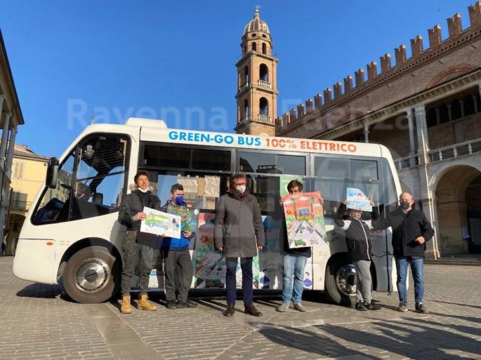 Nelle scorse settimane i quattro ragazzi, Matteo Piras, Marko Palma, Simone Missirolie Aran Pasi, erano stati premiati nella Sala Bigari del Comune di Faenza mentre oggi pomeriggio, dopo che le fiancate del Green-Go Bus sono state arricchite con i disegni dei vincitori, foto di gruppo tra i vincitori, Giorgio Erbacci e il sindaco di Faenza, Massimo Isola.